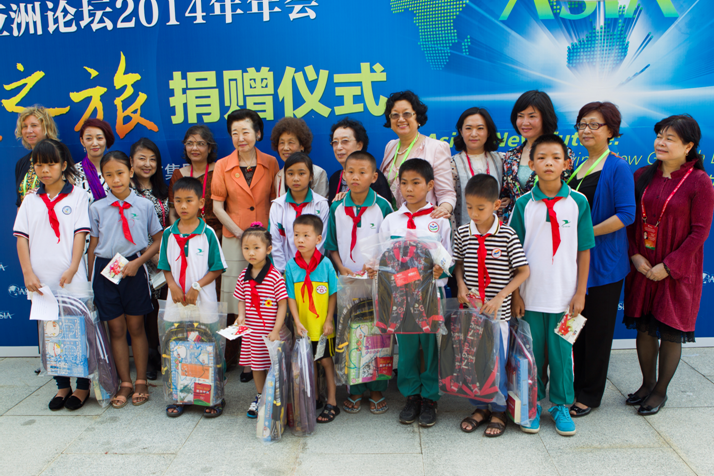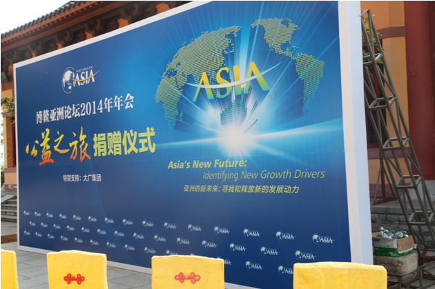 4月10日下午17点,博鳌亚洲论坛大使夫人公益之旅在博鳌禅寺内举行,此次大使夫人活动由博鳌亚洲论坛秘书处主办,大广天下投资控股集团为整个活动全程提供支持,向琼海市孤儿院贫困孤儿捐赠书包等学习用品及善款,
