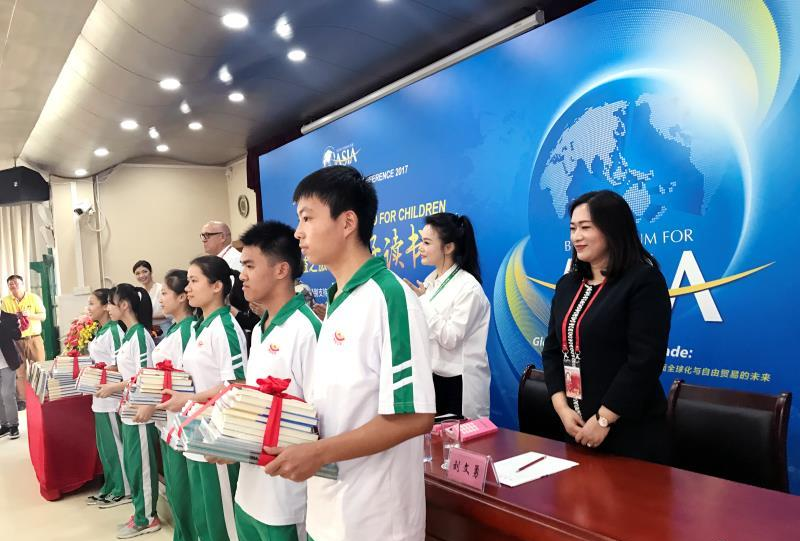 谢淑敏女士表示,教育是一个国家传承文明的重要途径,同学们都是国家未来的希望,一定要多读书、读好书、好读书,读书的阶段不能放弃,一定要珍惜读书的好时光,读书贵在坚。我始终坚信天道酬勤。博鳌亚洲论坛作为一个国际经济论坛,始终高度重视各国的教育与文化的进步与发展。希望通过今天的捐赠图书活动,呼吁更多的人关注公益活动。今天邀请的中外嘉宾在活动中与孩子们分享了阅读的快乐,让孩子们通过书感受到人生的意义和价值。